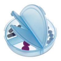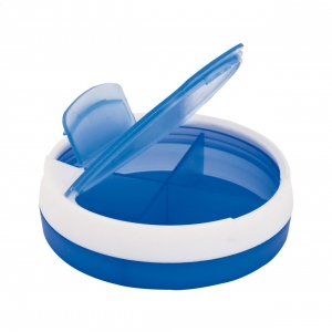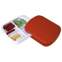Praktische Pillendose mit vier Fächern und einer besonders großen bedruckbaren Fläche.