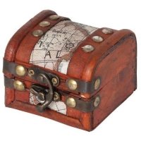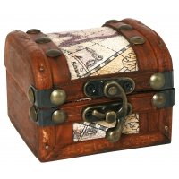 Aus Holz. Mit gewölbtem Deckel, Metall-Zierverschluss und Metallbeschlägen. Maße: 6 x 4,5 x 3,7 cm. Achtung! Kein Spielzeug!