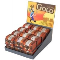 Das Holzkistchen mit Leder- und Nietendekor beinhaltet einen schönen Schatz: Katzengold (Pyrit)! Achtung! Kein Spielzeug!