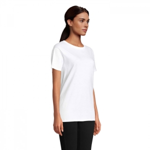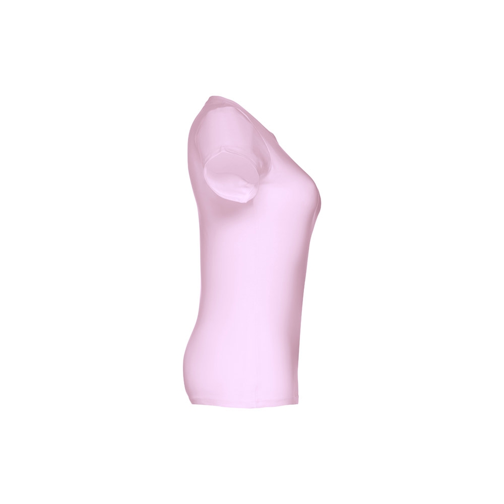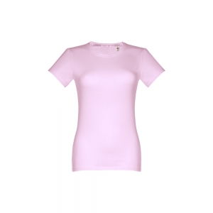 Damen T-shirt aus 100% Strickjersey und Baumwolle (190g / m²) mit kardiertem Baumwollfaden, tailliert. Diese hat einen dünnen Jersey-Kragen mit Satin-Verstärkungsband und Doppelnaht an Ärmeln und Saum. Bei der Farbe 183 bestehend aus 90% Baumwolle und 10% Viskose. Größen: S, M, L, XL, XXL
