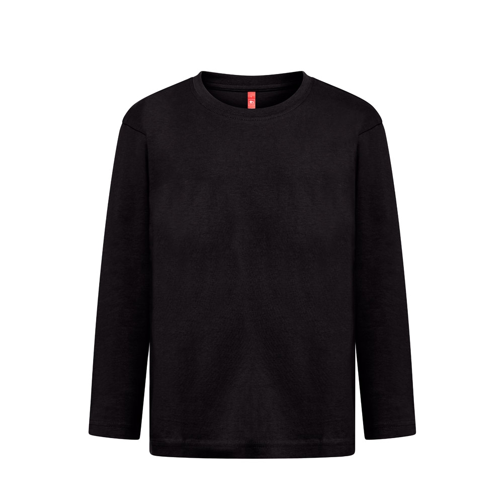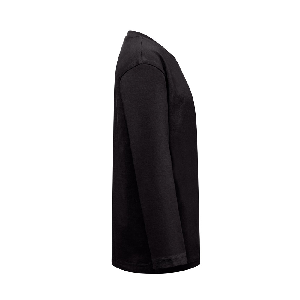Langarm Oberteil (150 g / m²) mit enzymatischer Behandlung, für Kinder aus Jersey-Stoff (100% Baumwolle aus nachhaltigem Anbau). Kragen aus 1 x 1-Rippe mit Verstärkungsband aus Jersey. Schlauchförmiges T-Shirt mit regelmäßigem Schnitt und doppelten Nähten an den Ärmeln und am Saum. Größen: 2, 4, 6, 8, 10, 12