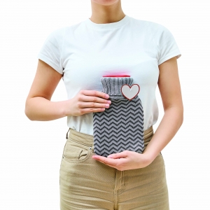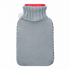 Wärmflasche aus Gummi mit einem Fassungsvolumen von 500 ml und einer Strickummantelung. Ihre Werbung drucken wir mittig auf den Bezug.