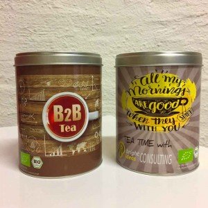 Verwöhnen Sie Ihre Kunden mit einem eigenen Werbetee. Die Dose gestalten wir schon ab 24 Dosen mit einem Label in Ihrem eigenen Design.