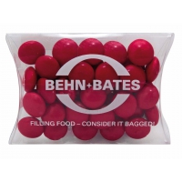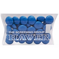 Artikel-Nr: 8791042PET-Kissen-Verpackung transparent gefrostet oder transparent poliert, Volumenabfüllung max. 15 g, Füllung B: Espresso Linsen, Brause Pastillen, Mint-Pastillen zuckerfrei, Mint-Pastillen zuckerfrei-oval, Schoko Linsen farblich sortiert (mögliche Farben: blau, braun, gelb, grün, lila, orange, pink, rot, schwarz, türkis, weiß), Druckart: Tampondruck