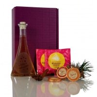 Artikel-Nr: A276K00969Weihnachtliches Präsentset bestehend aus einer sandgestrahlten Schmuckflasche 0,1 Ltr. 'Preludio', befüllt mit feinem Weihnachtslikör 20 % vol., im Arrangement mit zwei Pyramidenteeebeutel und drei köstlichen Schokodublonen à 8 g.Eine genussvolle Aufmerksamkeit für Kunden, Freunde und Geschäftspartner. Werbemöglichkeit durch Sandstrahlung der Flasche mit Ihrem Logo.
