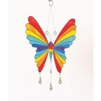 Der farbenfrohe Fensterschmuck bringt bei Sonnenschein bezaubernde Lichtspiele ins Zimmer . Mit Öse zum Aufhängen. Handgefertigt aus Draht und Polyresin.