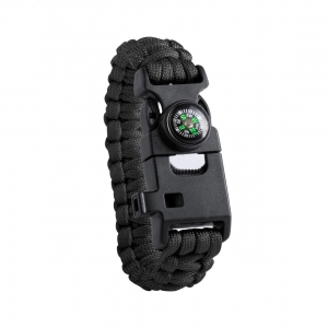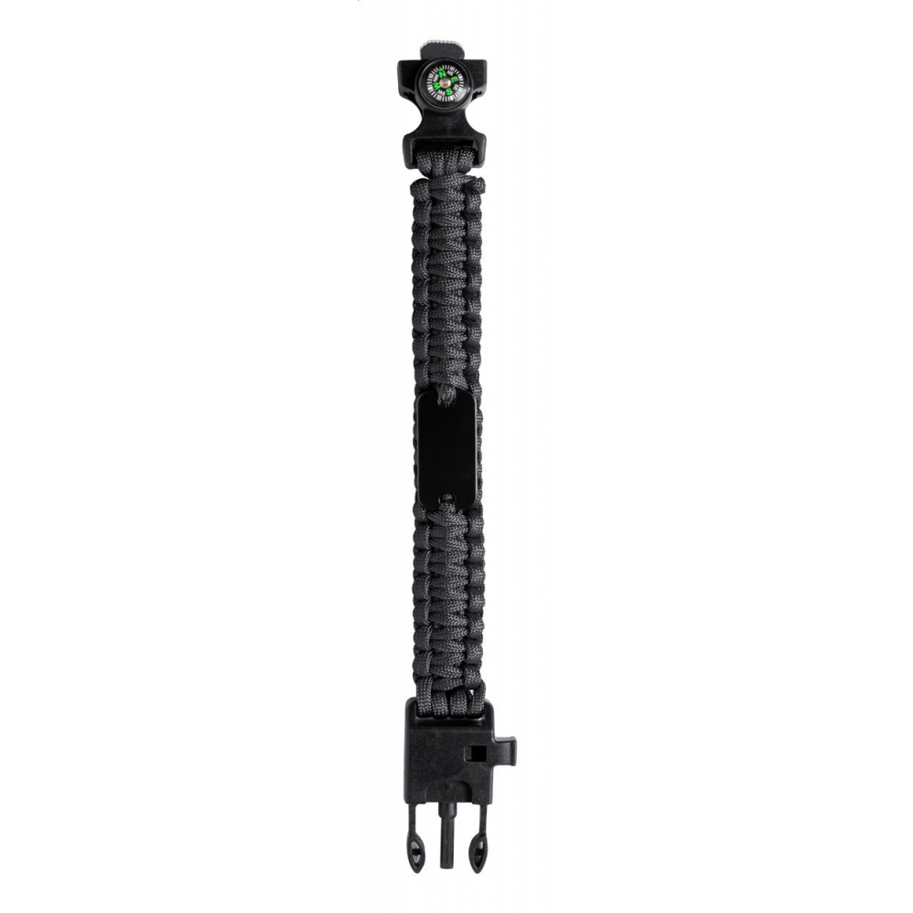 Artikel-Nr: AND721473-10Multifunktionales Survivour-Armband aus Nylon-Paracord mit Kompass, Pfeife und Feuersteinzünder.