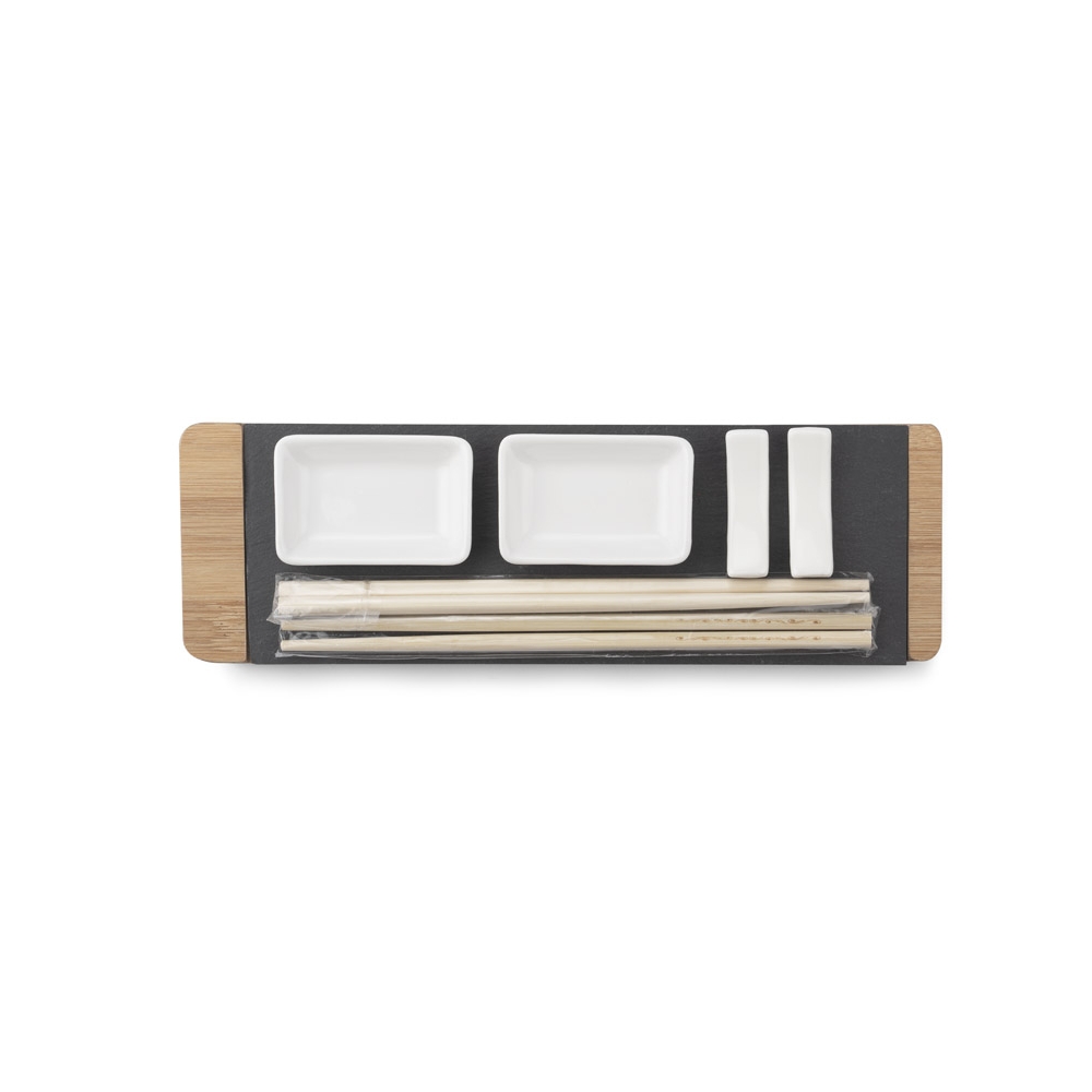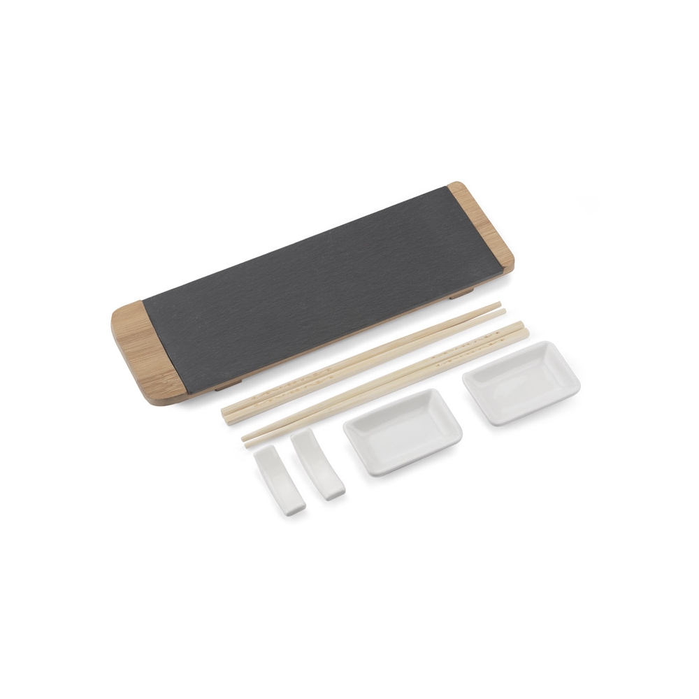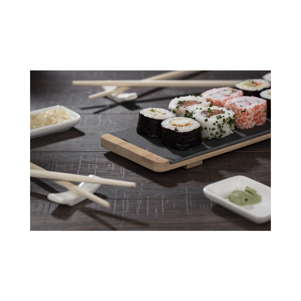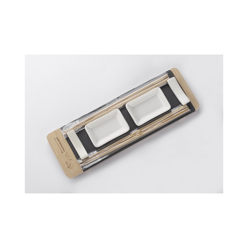 Artikel-Nr: ARD16528Ein Sushi-Set ist eine tolle Geschenkidee. Das Set enthält eine Bambusmatte mit Steinbrett, Bambus-Essstäbchen mit Ständern und Saucen-Schalen. Set für zwei Personen. Es wird jedem Sushi-Liebhaber gefallen.