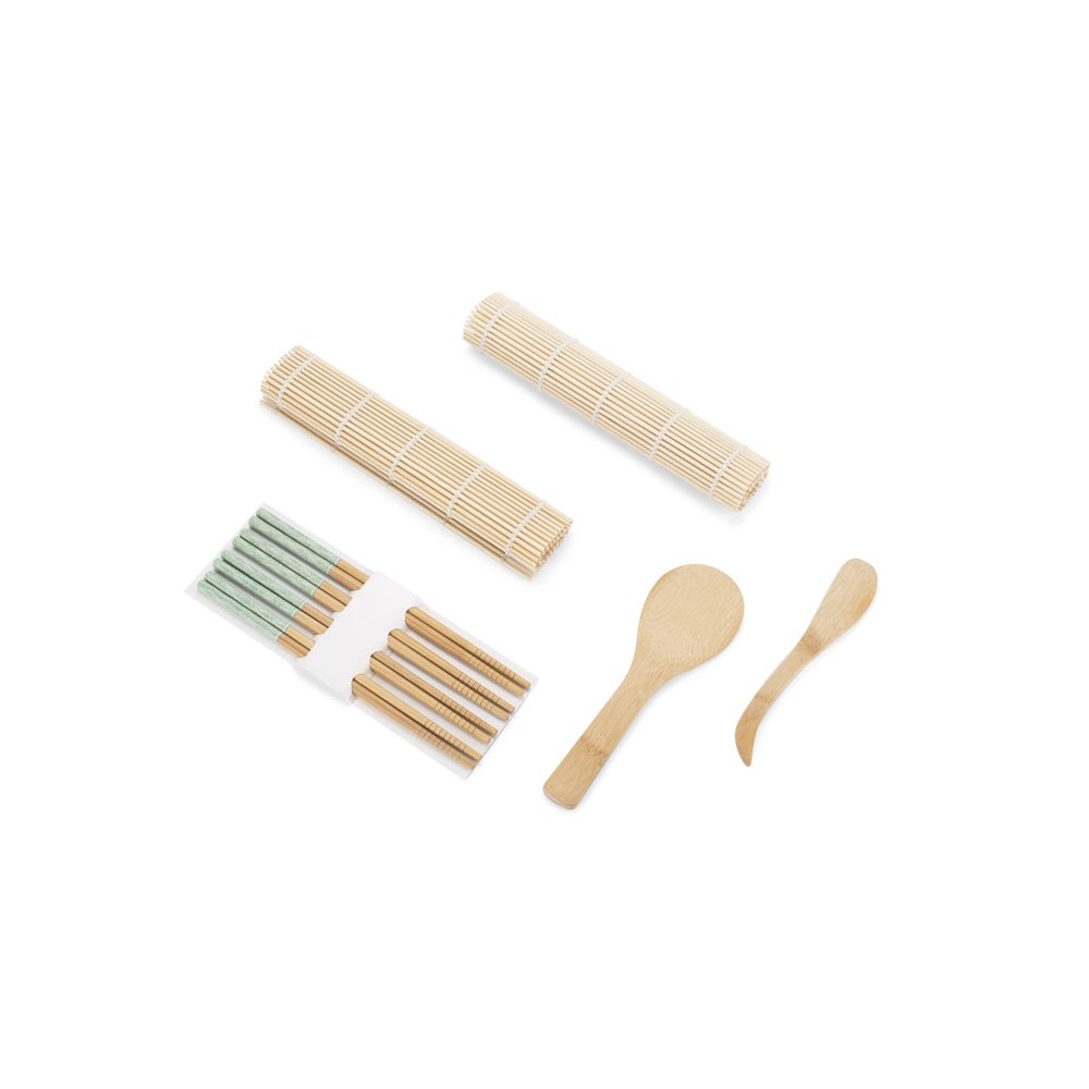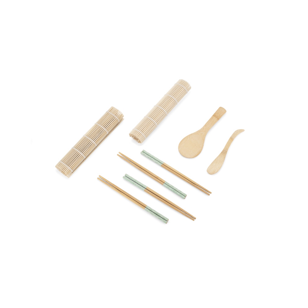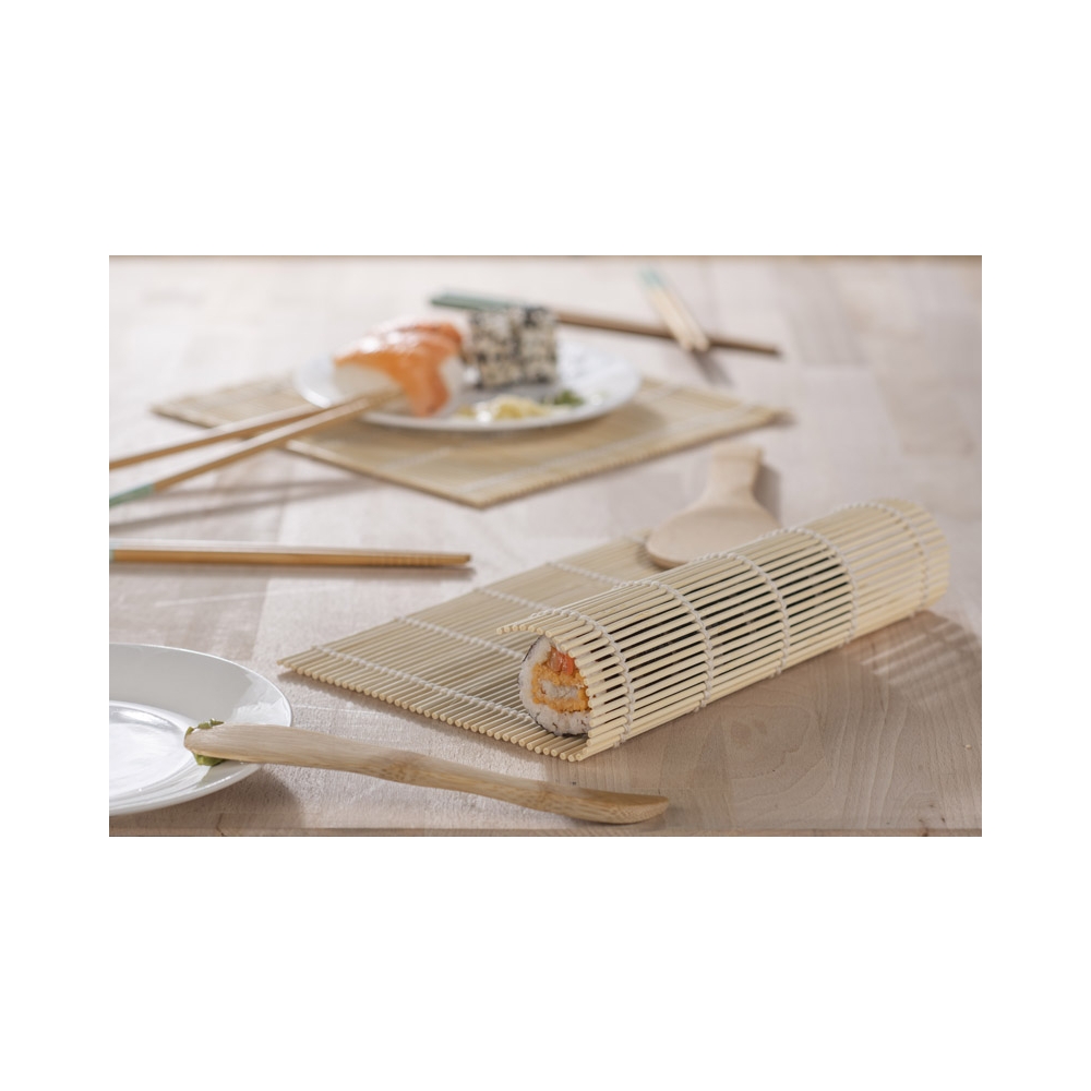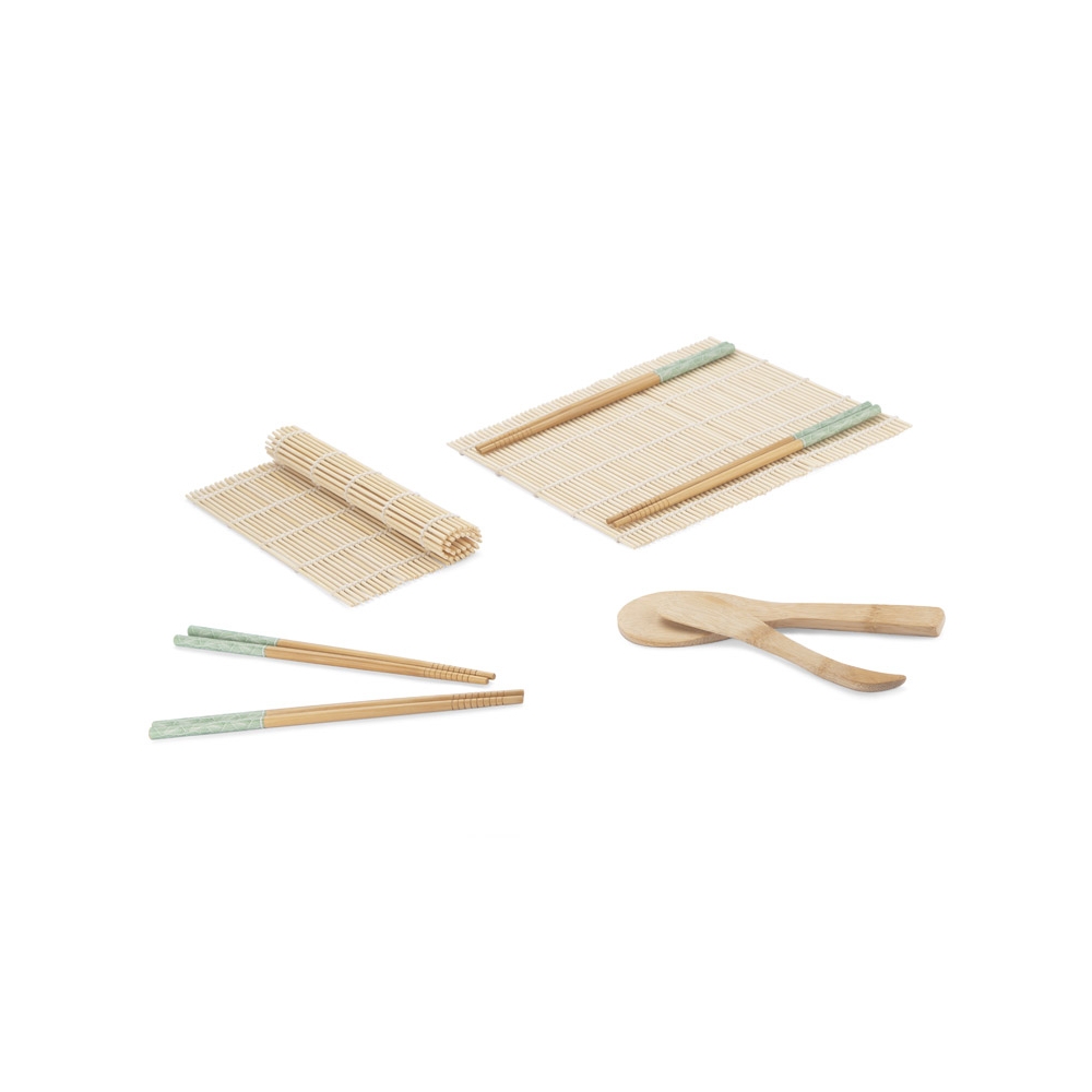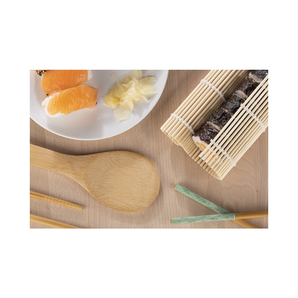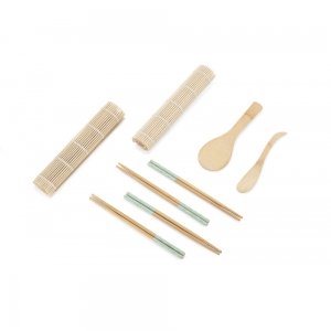 Artikel-Nr: ARD16543Das NIGIRI Sushi-Set wird jeden Amateur der eigenen Sushi-Zubereitung begeistern. Das Set enthält zwei Rollmatten, einen Bambuslöffel, ein Spreizmesser und vier Paar Essstäbchen mit dem Original BLUE COLLECTION-Aufdruck. Set: Matte: 240 x 230 x 4 mm; Messer: 30 x 180 x 9 mm; Löffel: 65 x 200 x 7 mm; Essstäbchen: ⌀ 7 x 227 mm.