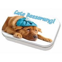 Artikel-Nr: 8791172Weiße Metalldose mit Scharnierdeckel, eingeschweißt in transparente Folie, Volumenabfüllung (max. 65g), Füllung A: Mint Pastillen, Mint Sternchen, Salmiak Splitter, Schoko Konfetti bunt, Traubenzucker Herzchen Orange o. Zitrone, Traubenzucker Pastillen, Traubenzucker Sanddornfrucht, Druckart: Tampondruck