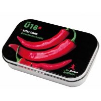Artikel-Nr: 8791170Weiße Metalldose mit Scharnierdeckel, eingeschweißt in transparente Folie, Volumenabfüllung (max. 65g), Füllung A: Mint Pastillen, Mint Sternchen, Salmiak Splitter, Schoko Konfetti bunt, Traubenzucker Herzchen Orange o. Zitrone, Traubenzucker Pastillen, Traubenzucker Sanddornfrucht, Druckart: Tampondruck