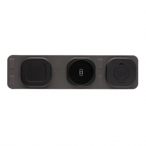 Artikel-Nr: XND308531Luxuriöses und faltbares kabelloses 3-in-1-Ladegerät aus RCS recyceltem ABS. Gesamtanteil an recyceltem Material: 46% basierend auf dem Gesamtgewicht des Artikels. Die RCS-Zertifizierung gewährleistet eine vollständig zertifizierte Lieferkette für die recycelten Materialien. Das kabellose Ladegerät verfügt über ein magnetisches kabelloses 15W-Ladegerät und ein zusätzliches kabelloses 5W-Ladegerät, das für Ohrhörer oder andere kleine kabellos aufladbare Geräte geeignet ist, sowie ein kabelloses 2,5W-Ladegerät für ihre Apple Watch. Inklusive 120cm langem RCS-zertifiziertem Kabel aus recyceltem TPE. Verpackt in FSC®-Mix-Kraftverpackung. Artikel und Zubehör 100% PVC-frei. Input: 9V/3A für optimale Nutzung. Output: Telefon: 9V/1.1A; 9V/1.67 A/(15W), Ohrhörer: 5V/1A (5W), Uhr: 5V/0,5A.