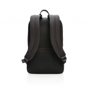 Artikel-Nr: XND763161Dieser stilvolle Handgepäck-Laptop-Rucksack ist für Geschäfts- und Urlaubsreisen gedacht. Er hat ein gepolstertes 15,6" Laptopfach sowie einen Trolley-Gurt und einen USB A-Ausgang. Zudem findet sich ein seitliches Schnellzugriffsfach mit RFID-Schutz ( NFC 13,56 MHz blockierend). Die Vorderseite ist mit reflektierenden Sicherheitsstreifen versehen. PVC-frei. Mit AWARE™ Tracer, der die tatsächliche Verwendung von recycelten Materialien bestätigt. Zudem werden 2% des Erlöses jedes verkauften Aware™-Produkts an Water. org gespendet.