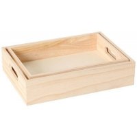 Aus Naturholz. Ideal zum Selbstgestalten und Basteln, zum Beispiel mit Serviettentechnik. Abmessungen: groß 30x21,5x7cm, klein 27,5x19x6cm.