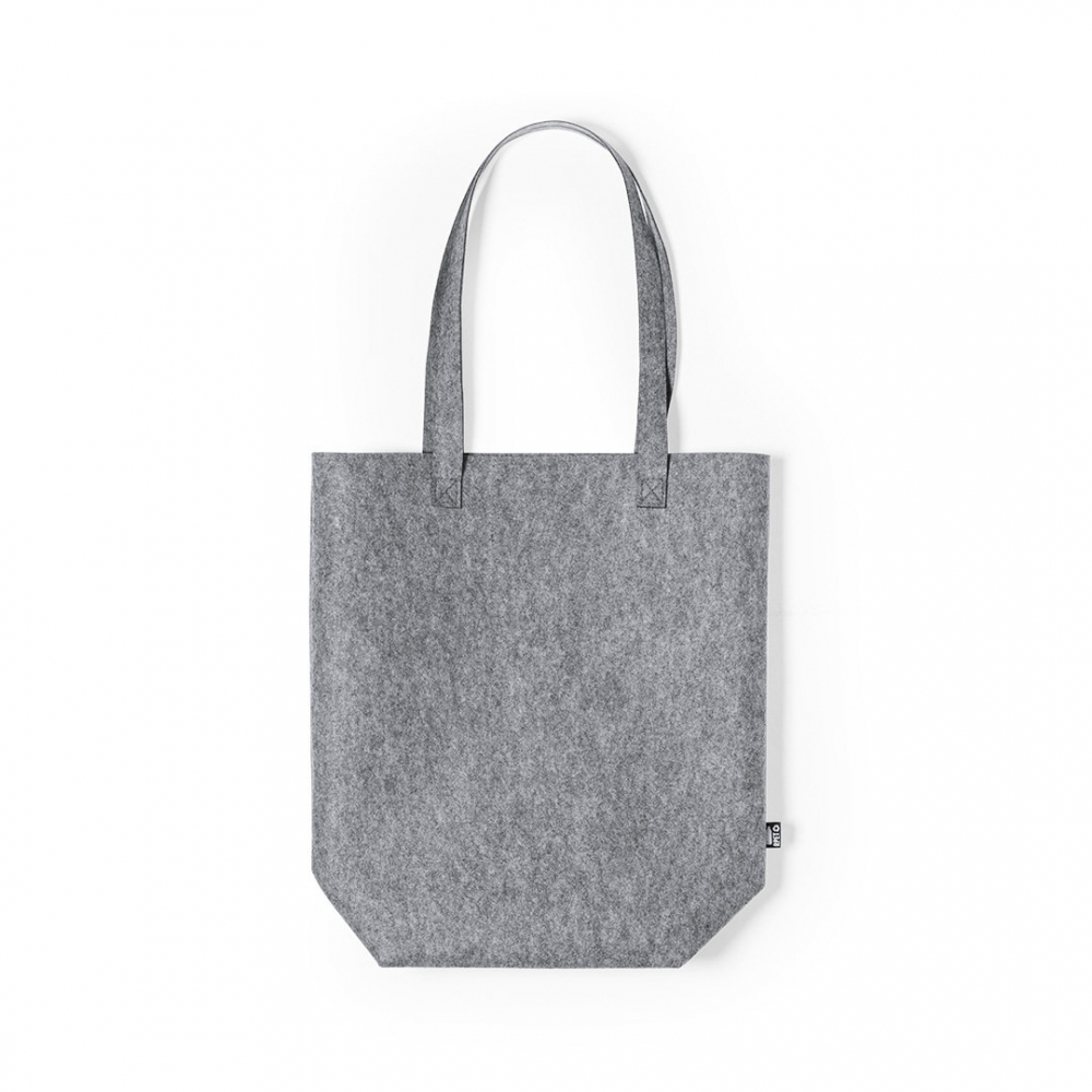 Artikel-Nr: KTO11250008000Linie "Natur" Tasche aus widerstandsfähigem, recyceltem RPET-Filz. Das Ergebnis der Kombination der Recyclingprozesse von Kunststoffen mit der jahrtausendealten Technik der Filzherstellung ist ein Öko-Trendmaterial, das nicht nur recycelt, sondern auch wiederverwertbar ist. Rechteckiges Design, mit Zwickel am Boden, extra langen und extra breiten verstärkten Griffen (70 x 3,5 cm). Widerstandsfähigkeit bis zu 6 kg, mit RPET-Emblem auf dem Außenetikett.