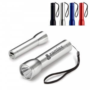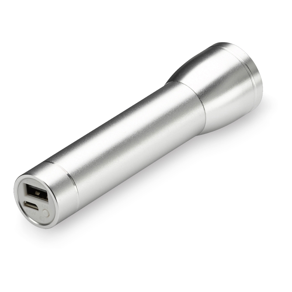 Aluminium Taschenlampe mit integrierter Powerbank mit 2200mAh. Inkl. Geschenkverpackung und Ladekabel.
