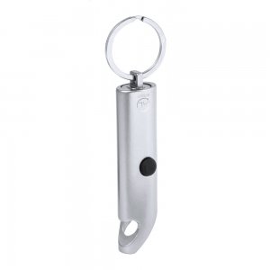 Artikel-Nr: AND734085-21Mini-Taschenlampe aus recyceltem Aluminium mit 3 LED, Flaschenöffner und Schlüsselring. Mit Knopfzellenbatterie.