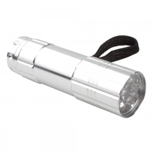 Artikel-Nr: AND810332-21Taschenlampe aus Aluminium mit 9 LED's und Handschlaufe. Inkl. Batterien (3 x AAA).
