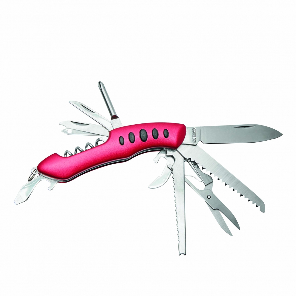 Artikel-Nr: INP56-0301009Taschenmesser BIG R., 11-teilig: bestehend aus Schere, große Säge, kleine Säge, Messer, Dosenöffner, Flaschenöffner, Korkenzieher, Ahle, Feile, Lochstecher und Kreuzschraubendreher, inkl. Schlüsselring, in Geschenkbox
