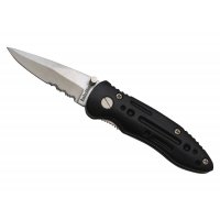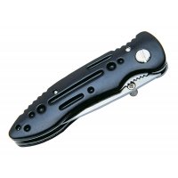 Artikel-Nr: 688ECO034Minitaschenmesser. Griff aus schwarz lackiertem Aluminium. Edelstahlklinge, vorne dünn und spitz (für präzise Schnitte), hinten fein gezahnt (für schwer schneidbare Materialien). Lässt sich einhändig öffnen und schließen dank einfach handhabbarer Sicherheitssperre.