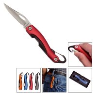 Artikel-Nr: 57384130RO-SWProfitieren Sie überall von den Vorzügen dieses eleganten, handlichen und scharfen Messers (Klingenlänge 7,5 cm) aus rostfreiem Edelstahl 2Cr13. Ideal beim Wandern, Reisen, Picknick, Camping, in der Freizeit oder auch im Büro. Die farbigen Aluminium Griffschalen sowie der Karabiner zum Befestigen an der Gürtelschlaufe, am Rucksack usw. runden die edle Optik ab. Hochwertige Karton-Geschenkverpackung inkl.