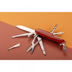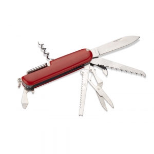 Artikel-Nr: ARD29194-04Das HIDI Taschenmesser mit einem roten Kunststoffgriff. Dieses Taschenmesser verfügt über alle wichtigen Funktionen wie Messer, Säge, Fischschaber, Schere, Dosenöffner, Flaschenöffner, Schraubendreher, Korkenzieher, Ahle und Lederlocher.