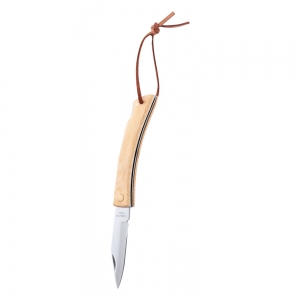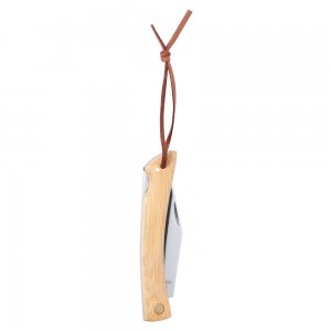 Artikel-Nr: AND721903Taschenmesser aus Edelstahl mit Bambusgriff und Band aus Kunstleder. Mit Sicherheitsverschluss.