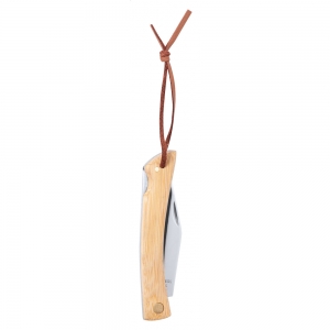Artikel-Nr: AND721903Taschenmesser aus Edelstahl mit Bambusgriff und Band aus Kunstleder. Mit Sicherheitsverschluss.