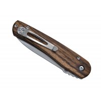 Artikel-Nr: 688ECO198Klappbares Taschenmesser mit Klinge aus Edelstahl. Titanbeschichtete Klinge im Stone-Wash-Stil. Öffnen und Schließen mit einer Hand. Sicherheitssperre ?Liner Lock?. Klingenlänge: 9 cm. Klinge aus exotischem Eschenholz. Gürtelclip.