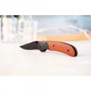 Artikel-Nr: AND781566Taschenmesser aus Edelstahl mit Holzgriff und Sicherheitsverschluss.
