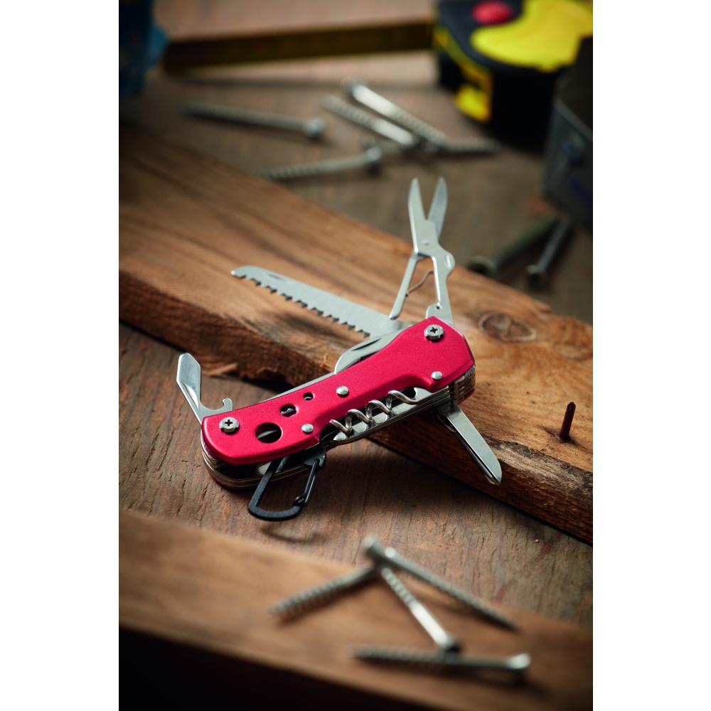 Artikel-Nr: INP56-0301143Taschenmesser STRONG HELPER, 12-teilig: mit Messer, Säge, Schere, Dosenöffner, Korkenzieher, Kapselheber und Schlitzschraubendreher, Kreuzschraubendreher, Bohr- und Nähahle, Stechahle, Entschupper, Nagelfeile und Karabiner (der Karabiner ist NICHT als Sicherung beim Klettern geeignet)