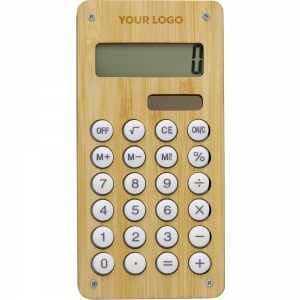 Artikel-Nr: GIV710931823Taschenrechner aus Bambus und ABS, mit bis zu 8 Stellen. Mit Ball-Labyrinth-Spiel auf der Rückseite. Der Rechner hat ein Solarpanel und eine Batterie.