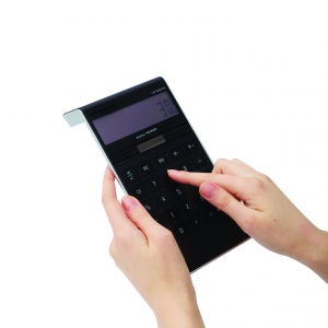 Artikel-Nr: INP56-1104412Taschenrechner DOTTY MATRIX in edler Hochglanz-Optik: mit Dual-Power und praktischem Aufsteller, gut lesbares 10-stelliges Dot-Matrix-Display, in Box