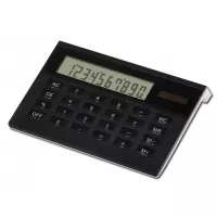 Dual Power Taschenrechner aus Kunststoff mit zehnstelligem Display, incl. Knopfbatterie.