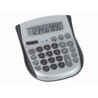 Dual Power Taschenrechner aus Kunststoff mit zehnstelligem Display, incl. Knopfbatterie.