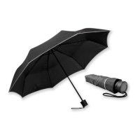 Taschenschirm aus Polyester, manuell, mit Kunststoffgriff und Hülle, 8 Segmente. Geeignet für 3D-Etikette. Gefaltet ø 5x24 cm.