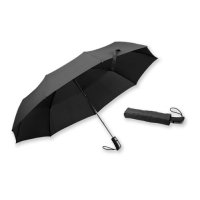 Taschenschirm aus Polyester mit Sturmsicherung, Automatik, Kunststoffgriff und Hülle, 9 Segmente. Gefaltet ø 6x36,5 cm.