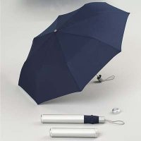 Artikel-Nr: W90444220duomaxTaschen-/Faltschirm mit Handöffner, ca. 55 cm Speichenlänge, ca. 24 cm geschlossene Länge, Polyester-Pongee-Bespannung (190 T) (hydrophob imprägniert), Kunststoff-Griff (mattsilber), ULTRA-LEICHTES ALUMINIUM-GESTELL, WINDPROOF, verpackt in Aluminium-Dose mit praktischem Drehverschluss, ca. 28 x 5,4 cm. Erhältlich in den Farben: navyblau und schwarz.