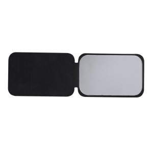Klappspiegel mit Umschlägen aus weichem PU. Mit verstellbarem Ständer in drei Positionen. Mit 1x Vergrößerung.
