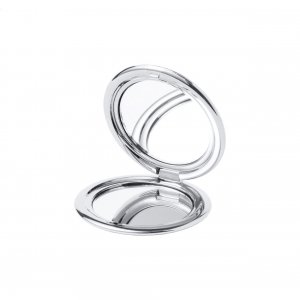 Artikel-Nr: AND722714-21Taschenspiegel aus ABS Kunststoff mit Metallic-Oberfläche, mit einer normalen und einem Vergrößerungsspiegel.
