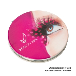 Artikel-Nr: RFS52260Machen Sie aus diesem Doppel-Kosmetikspiegel (Vergrößerung 2fach) Ihr Unikat. Die Kunstleder-Oberfläche ist per REFLECTS-UV-Print mit Ihrem fotorealistischen Motiv wirkungsvoll und unnachahmlich veredelbar.