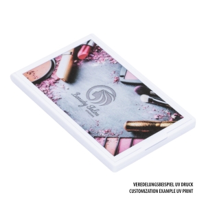 Artikel-Nr: RFS52094-WEDieser handliche Taschenspiegel lässt sich wunderbar verschließen und schützt so das einseitige Spiegelglas gegen Stöße und Kratzer. Der leichte, rechteckige Taschenspiegel ist aus weißem Kunststoff und die Außenseite ideal für einen vollflächigen UV-Druck. Alternativ können Sie den Artikel mit einem ein- bis vierfarbigen Tampondruck mit Ihrem Logo oder Ihrer Grafik bedrucken lassen.