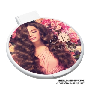 Artikel-Nr: RFS51793-WEDer weiße, griffige Taschenspiegel passt in jede Kosmetik- und Handtasche und zieht die Blicke auf sich. Das einseitige Spiegelglas ist durch seine verschließbare Oberseite vor Kratzern und Stößen geschützt. Diese bietet sich auch für eine auffällige Veredelung an. Entscheiden Sie sich für einen aufmerksamkeitsstarken, vollflächigen UV-Druck, ein Doming oder einen ein- bis vierfarbiger Tampondruck.