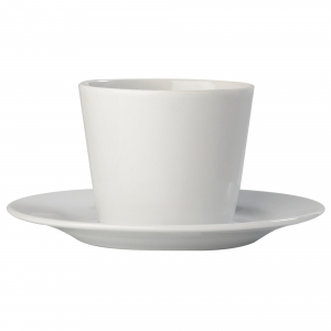 Artikel-Nr: ART98601N0001Kaffeetasse mit Untertasse aus hochwertigem Porzellan im schlichten, konischen Design. Standard Werbeanbringung auf der Tasse.