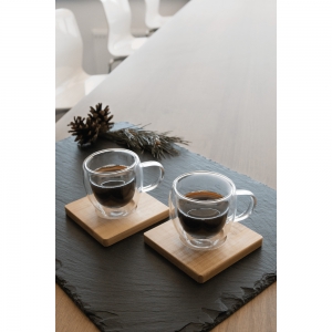 Artikel-Nr: INP56-0304458Glas-Tassen-Set BAMBOO DUO, 4-teilig: bestehend aus 2 Tassen (doppelwandig) und 2 Untersetzern aus Bambus, temperaturbeständig, Füllmenge je ca. 100 ml, in Box