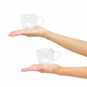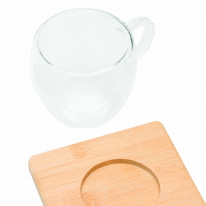 Artikel-Nr: INP56-0304458Glas-Tassen-Set BAMBOO DUO, 4-teilig: bestehend aus 2 Tassen (doppelwandig) und 2 Untersetzern aus Bambus, temperaturbeständig, Füllmenge je ca. 100 ml, in Box