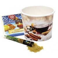 Inhalt: Becher mit Abdeckung enthält 1 Teebeutel Wintertee, Rohrzuckerstick (5 g)