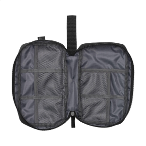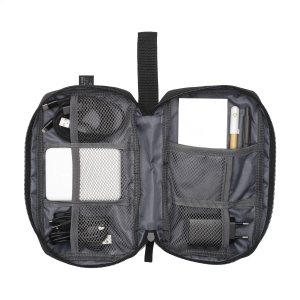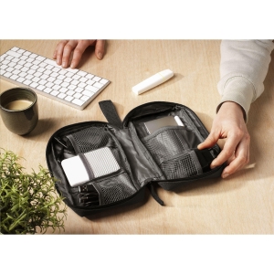 Artikel-Nr: CLP262584-001Etui zur geordneten und übersichtlichen Aufbewahrung von Kabeln, Ladegeräten und technischem Zubehör. Hergestellt aus 600D RPET-Polyester. Das Innere bietet reichlich Stauraum, unterteilt in mehrere (Netz-)Fächer. Mit Reißverschluss, einer zusätzlichen Reißverschlusstasche an der Außenseite und einer praktischen Trageschlaufe. Ideal für Reisen, aber auch praktisch für zu Hause oder im Büro. GRS-zertifiziert. Gesamtes recyceltes Material: 88%.