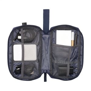 Artikel-Nr: CLP258432WoW! Etui zur geordneten und übersichtlichen Aufbewahrung von Kabeln, Ladegeräten und technischem Zubehör. Hergestellt aus 600D RPET-Polyester. Das Innere bietet reichlich Stauraum, unterteilt in mehrere (Netz-)Fächer. Mit Reißverschluss, einer zusätzlichen Reißverschlusstasche an der Außenseite und einer praktischen Trageschlaufe. Ideal für Reisen, aber auch praktisch für zu Hause oder im Büro. GRS-zertifiziert. Gesamtes recyceltes Material: 88%.