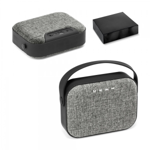 Artikel-Nr: PST97208-113Tragbarer Lautsprecher mit schlichtem Design, gummierter Oberfläche und Stoff-Frontgitter. Ausgestattet mit einem Tragegriff zum einfachen Aufhängen oder Mitnehmen sowie rutschfesten Silikonfüßen. Die zwei integrierten Lautsprecher sorgen für einen klareren und intensiveren Klang. Material: ABS, StoffKabellose Übertragung: BT v4'2Kapazität: 1'200 mAhUngefähre Akkulaufzeit: 4 Std. Ungefähre Ladezeit: 5 Std. Eingänge: microUSB-C (5 W), microSD, 3.5 mmLautsprecher: Frequenzbereich: 100 Hz – 20 kHzSignal-Rausch-Verhältnis: > 80 dB– Empfindlichkeit: 80 ±3 dBImpedanz: 4 ΩLautsprecher-Durchmesser: Ø 40 mmAusgangsleistung: 6 W (2 x 3 W) Mikrofon: Empfindlichkeit: -38 ±3 dBV / PaFunktionen: Freisprechfunktion, FM-RadioLieferumfang: USB-A- / microUSB-Kabel, 3.5 mm-AudiokabelVerpackung: Schwarze GeschenkschachtelAbmessungen: 160 x 120 x 50 mm | Schachtel: 180 x 180 x 66 mm